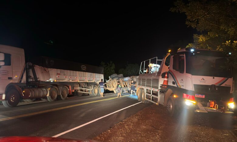 O motorista do veículo informou que a carreta apresentou falha no sistema de freios, o que provocou o tombamento de um dos vagões.