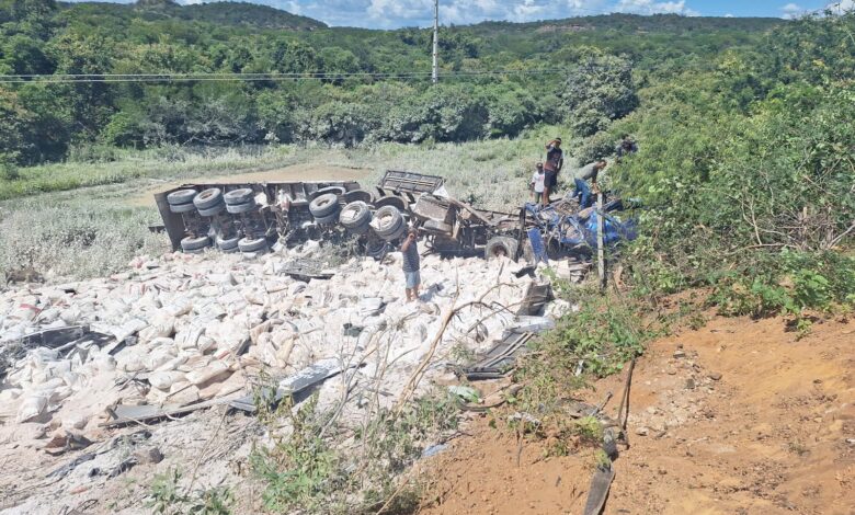Uma carreta carregada de trigo tombou e caiu da PI-141 na tarde de terça-feira (17), na localidade Tamboril, em Brejo do Piauí, a 423 Km de Teresina. Ninguém ficou ferido.