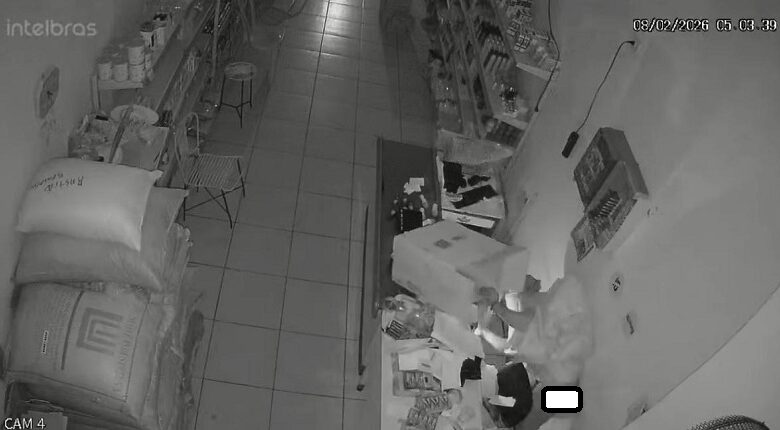 De acordo com informações do estabelecimento, o crime foi flagrado pelo sistema interno de câmeras de segurança. As imagens mostram o suspeito entrando no local, mexendo na gaveta do caixa e recolhendo alguns itens, que são colocados em uma sacola. Em seguida, ele deixa o mercadinho e foge.