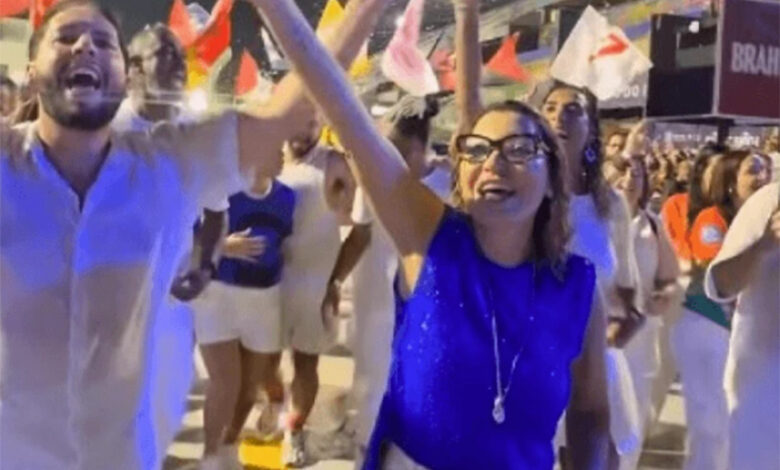 Em nota, a assessoria de Janja disse que “mesmo com toda segurança jurídica de que a primeira-dama, Janja Lula da Silva, poderia desfilar, diante da possibilidade de perseguição à escola e ao presidente Lula por receber uma das maiores honrarias que um brasileiro pode ter, que é ser homenageado por uma Escola de Samba, Janja optou por não desfilar para estar ao lado da pessoa que ela mais ama na vida”