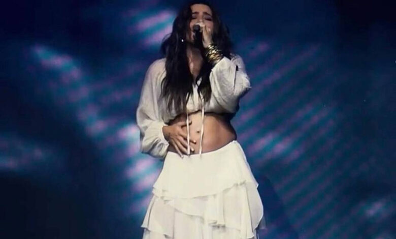 No momento do anúncio, a artista, toda de branco e com a barriga de fora, cantou “Coisa Rara”, escrita há alguns anos, que retrata o sonho de ser mãe. Os pais dela subiram ao palco e todos ficaram emocionados.