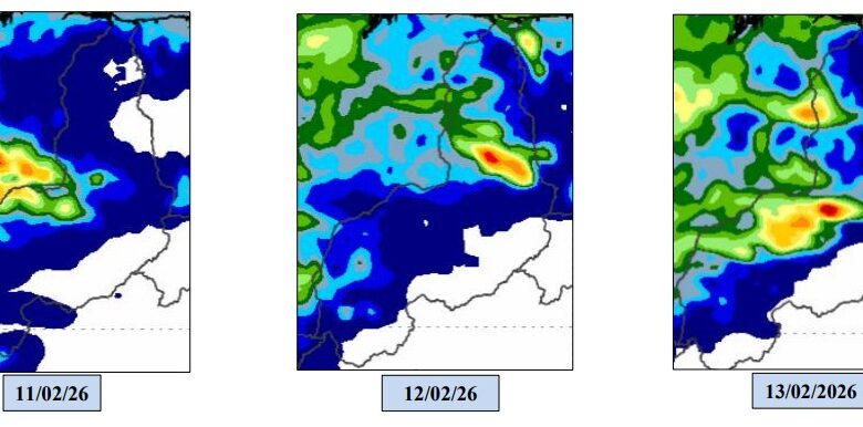 A Semarh aponta que, entre 11 e 17 de fevereiro, a chuva deve continuar distribuída pelo estado, podendo vir acompanhada de ventos mais intensos, especialmente no sudoeste.