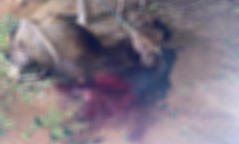 Uma imagem que circula nas redes sociais mostra o animal já sem vida, com um corte profundo e extenso na região do pescoço.